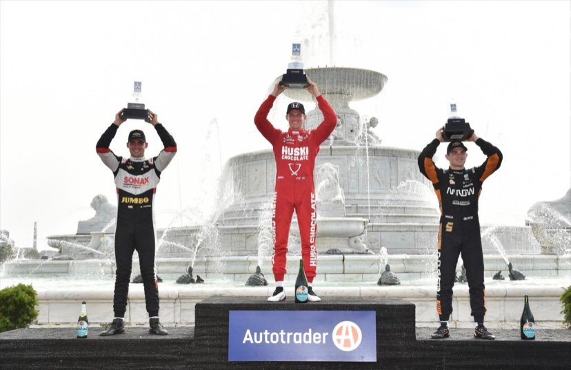 UN PODIUM DE JEUNES A L’ARRIVÉE DE LA 1ére COURSE DE DETROIT BELLE ISLE[/caption]