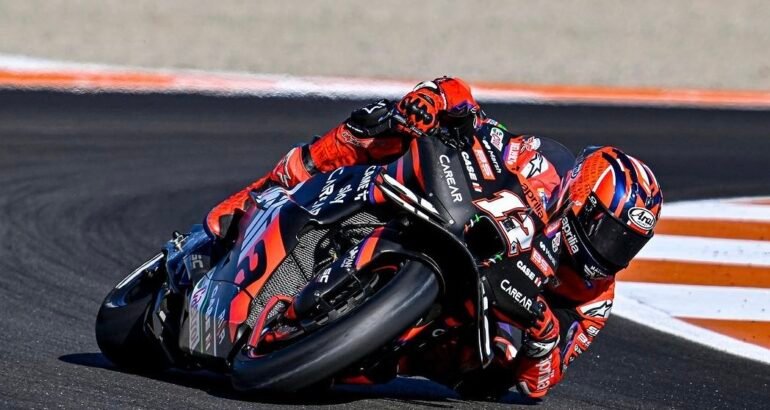 Les acteurs de la catégorie reine avaient rendez-vous en piste ce vendredi après-midi 24 novembre 2023 sur le circuit Ricardo Tormo pour disputer une Practice cruciale d’un Grand Prix de Valence, qui l’est tout autant…Au terme d’une séance particulièrement tendue et marquée par de nombreuses chutes, l’Espagnol Maverick Viñales (Aprilia Racing) se hisse au sommet de la feuille des temps grâce à un tour record établi en 1’29.142.« Top Gun » valide donc son billet pour la Q2 avec la manière tout comme Jorge Martín (Ducati Prima Pramac Racing), qui assure l’essentiel ce vendredi, lui qui est en chasse de gros précieux points et samedi en ‘Sprint et dans le VGP de dimanche, décisifs pour l’attribution du titre 2023.Troisième, le Français Johann Zarco (Ducati Prima Pramac Racing) conclut une superbe journée et sera à surveiller en qualifications. Marc Márquez qualifié