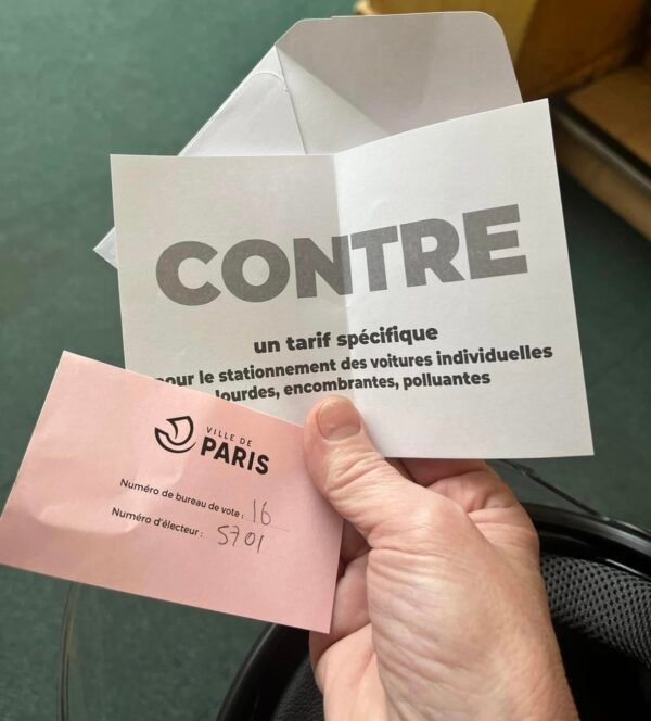 Pour ou contre un tarif spécifique pour le stationnement des voitures individuelles lourdes, encombrantes et payantes»Tel était la question posée aux Parisiens. Résultat ?A une courte majorité (54,55%) des votants les Parisiens se donc exprimés et prononcés pour «la création d’un tarif spécifique pour le stationnement des voitures individuelles lourdes, encombrantes, polluantes!