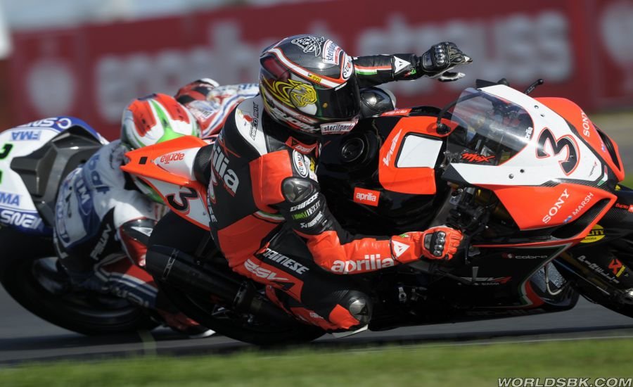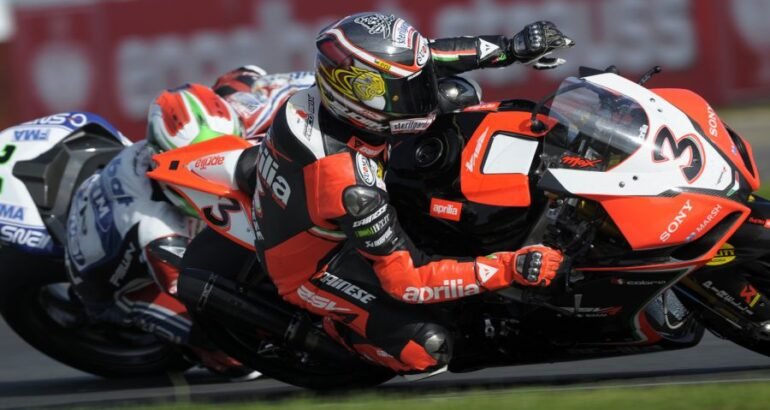 MAX BIAGGI[/caption]C’est évidemment dans la catégorie des à-ne-rater-sous-aucun-pretexte! Dans toutes les catégories, le titre reste à jouer, sauf en Supersport où Jules Cluzel est Vice-Champion du Monde. En revanche, titre à décrocher dans la série la plus prestigieuse, le Championnat du Monde Superbike (WSBK) où Max Biaggi (Aprilia) a quelques points d’avance sur la Kawasaki de Sykes et la BMW de Melandri.Grosse bagarre en vue…Et aussi en Superstock 1000 où un Français est en tête au général!