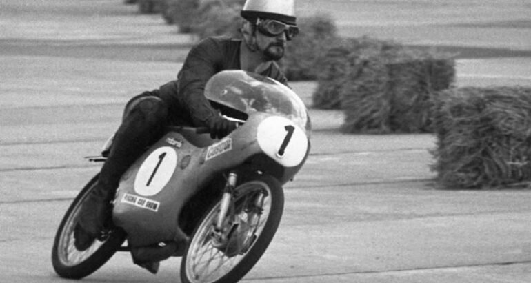 “Sur la photo en NB, Yves pilote le 50 Derbi construit par mon frère Bernard à Pont de Vaux et vendu au Toum avec lequel celui-ci a été sacré Champion de France dès l’année suivante en 1968…