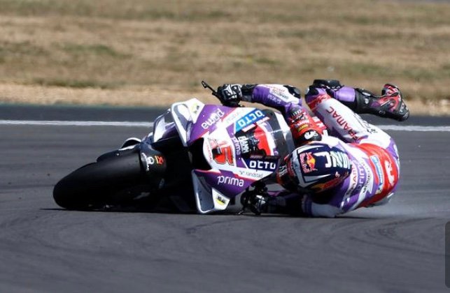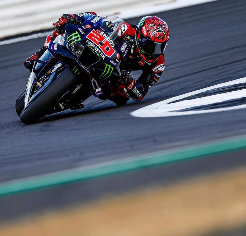 Le poleman Johann Zarco, le pilote Français du Prima Pramac Racing, avait pourtant signé un parfait envol, sauf que cinq boucles plus tard, patatras …le Français perdait le contrôle de sa Ducati Desmosedici, à l’entrée du virage 8… « On peut passer de héros à zéro en un rien de temps » Telles furent les toutes premières paroles du malheureux Zarco aprés sa chute survenue lors du 5éme tour alors qu’il menait ce British GPPuis il indiquait :« Pas de chance pour moi aujourd’hui. Les températures élevées m’ont poussé à prendre le pneu medium à l’avant, c’était un bon pneu puisque Pecco Bagnaia a gagné avec, mais il semble que pour moi cela a été la raison de ma chute, on a moins d’adhérence avec. »Il ajoutait en concluant : « J’ai manqué cette opportunité mais je ne peux pas rester là-dessus, j’ai hâte d’être en Autriche le 21 août pour la prochaine manche »Sa chute permettait du coup à Jack Miller, l’autre pilote Ducati Lenovo Team, de virer en tête devant Alex Rins du Team Suzuki Ecstar, parvenu d’emblée à se frayer un passage depuis la quatrième ligne. Pendant ce temps-là, Fabio Quartararo au guidon de sa Yamaha, observait son Long Lap … une pénalité qui le repoussait temporairement au cinquième rang!